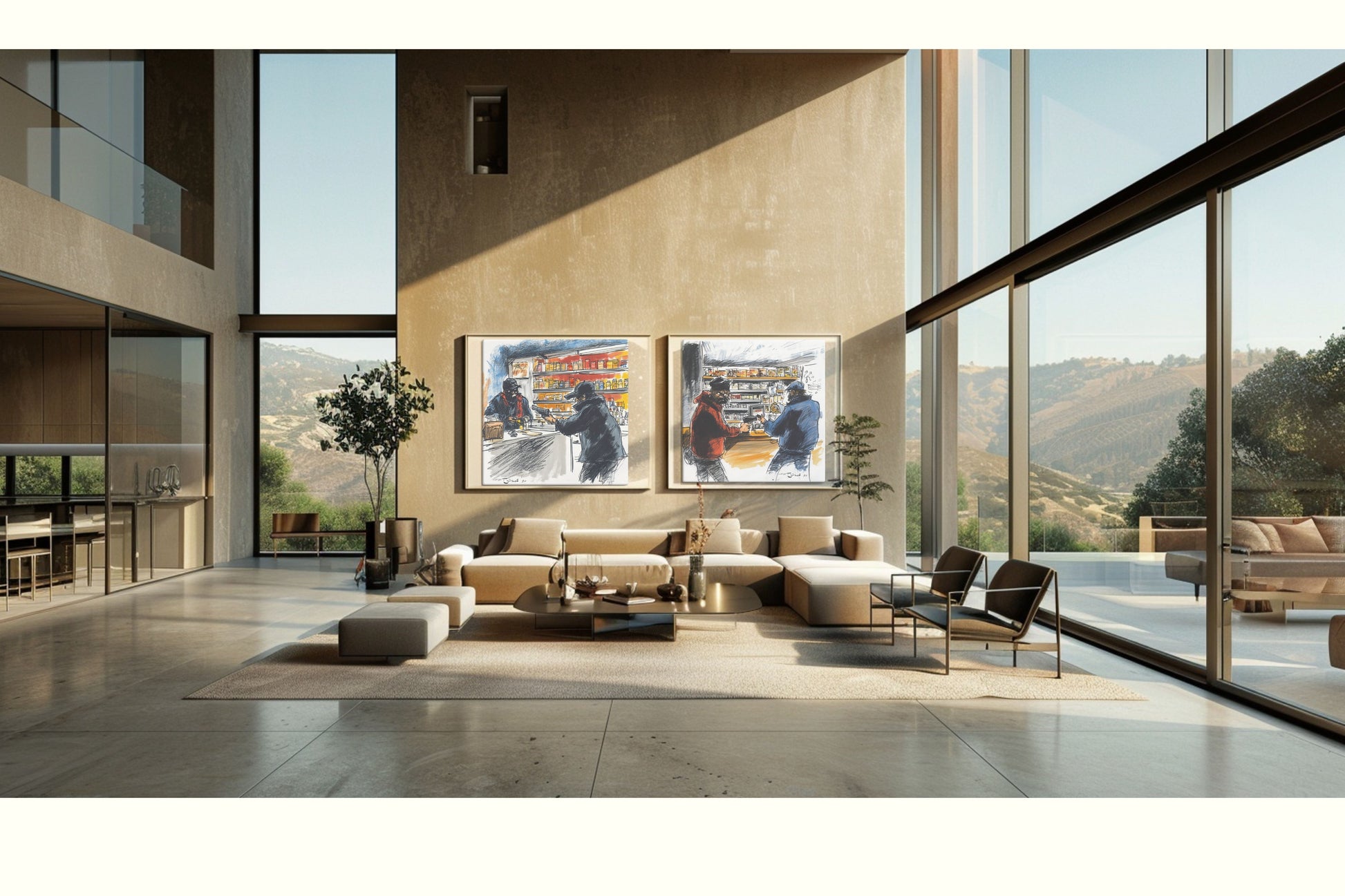 “Corner Store Conversations” is a raw, cinematic street-art canvas capturing a moment frozen between survival and consequence. The expressive sketch lines, gritty textures, and bold color strokes create a powerful scene straight out of a neighborhood story many people grew up hearing — or living through.